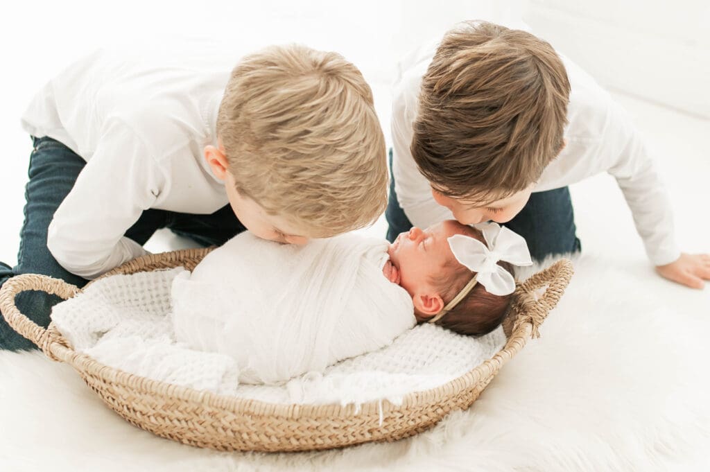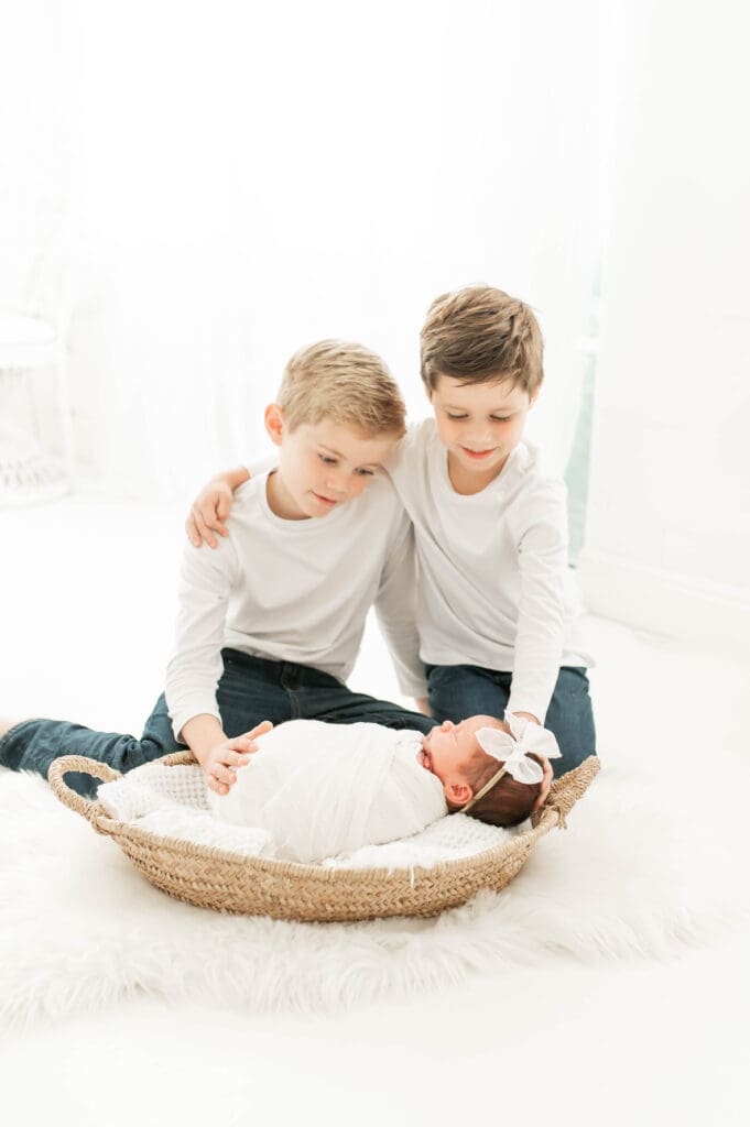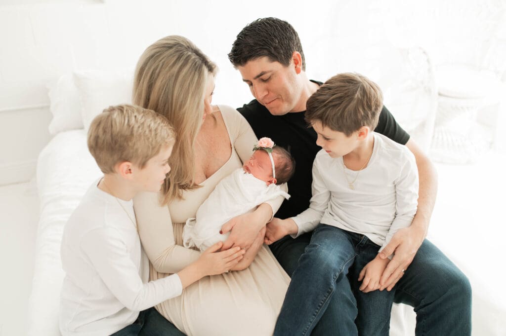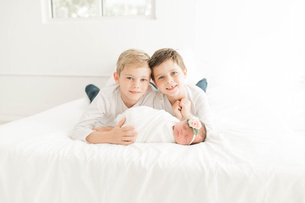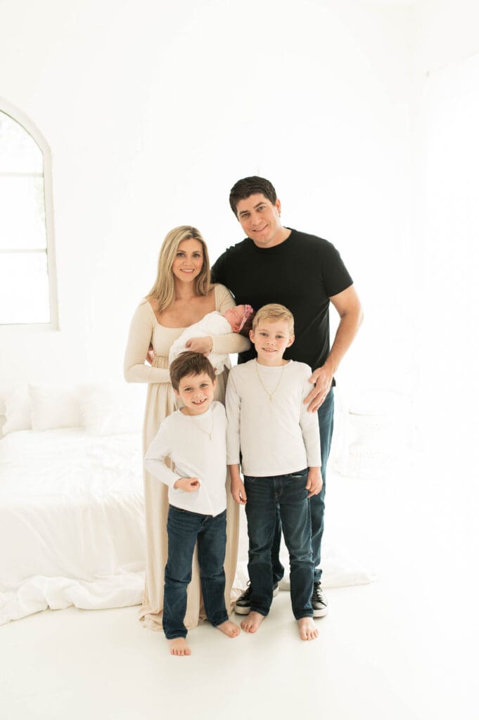 When you know you have welcomed the final piece of your family’s puzzle! Introducing baby girl, Margo! We absolutely loved this family session with her doting brothers, and beautiful parents soaking in the final time they will be in this newborn phase of life. Something tells me, her brothers will have her rough and tumbling very soon! Thank you for choosing us along all the babies journeys. We are honored! Enjoy this beautiful family session.