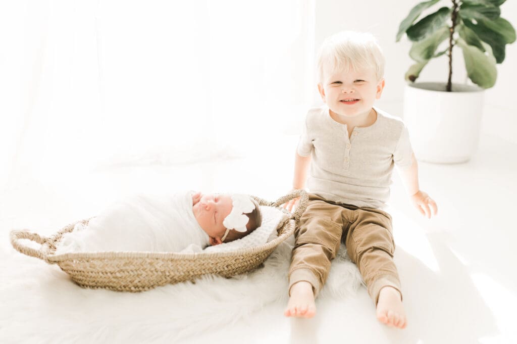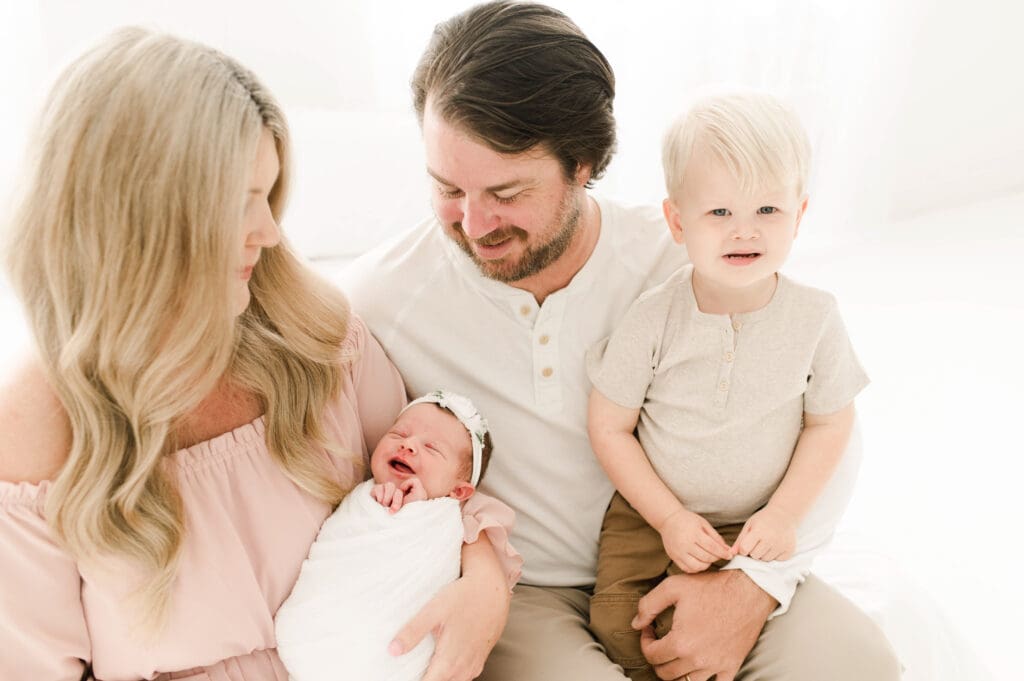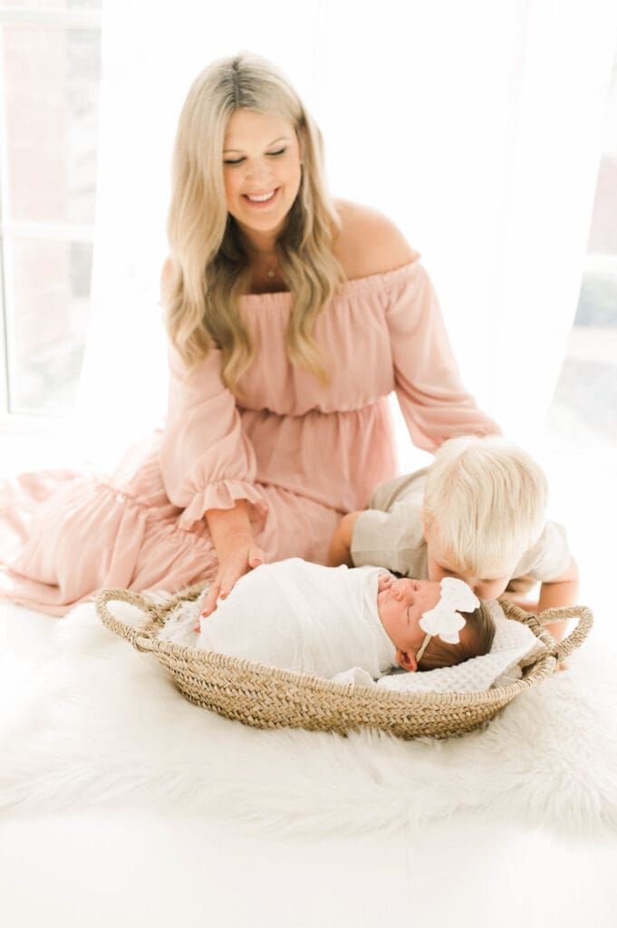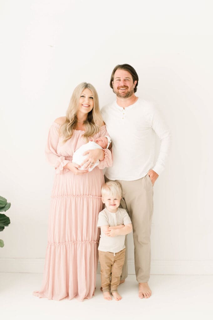 Daphne, what an adorable name!! The only Daphne we have had over the years, and we are obsessed with this beautiful gallery. When mom comes in, we have many dresses in the client closet to choose from. Many choose - white, but she went with pink, and the outcome is absolutely beautiful! We are obsessed with the love in the air, and the happiness beaming from everyone. How adorable is big brother Brooks…we can’t believe how time flies. We definitely needed to make sure this session was blogged for everyone to enjoy.