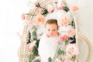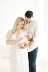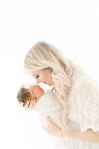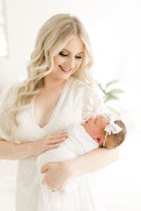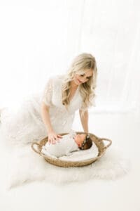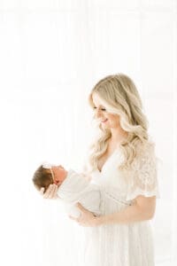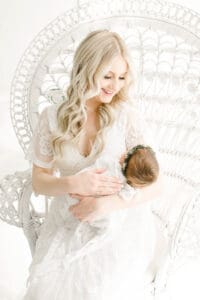We always love the light and airy, timeless feel of photography. We tend to lean towards whites, lighter blues and pinks, and a pop of green or cream in there as well! We carry a client closet for you to use, and it makes the whole process stress free for planning after baby arrives. Our bump to baby collection creates a cohesive look to your gallery wall a home. Your collections come with many images for you to choose from and narrow down your favorites. It’s never a bad day when you’re holding a previous newborn!